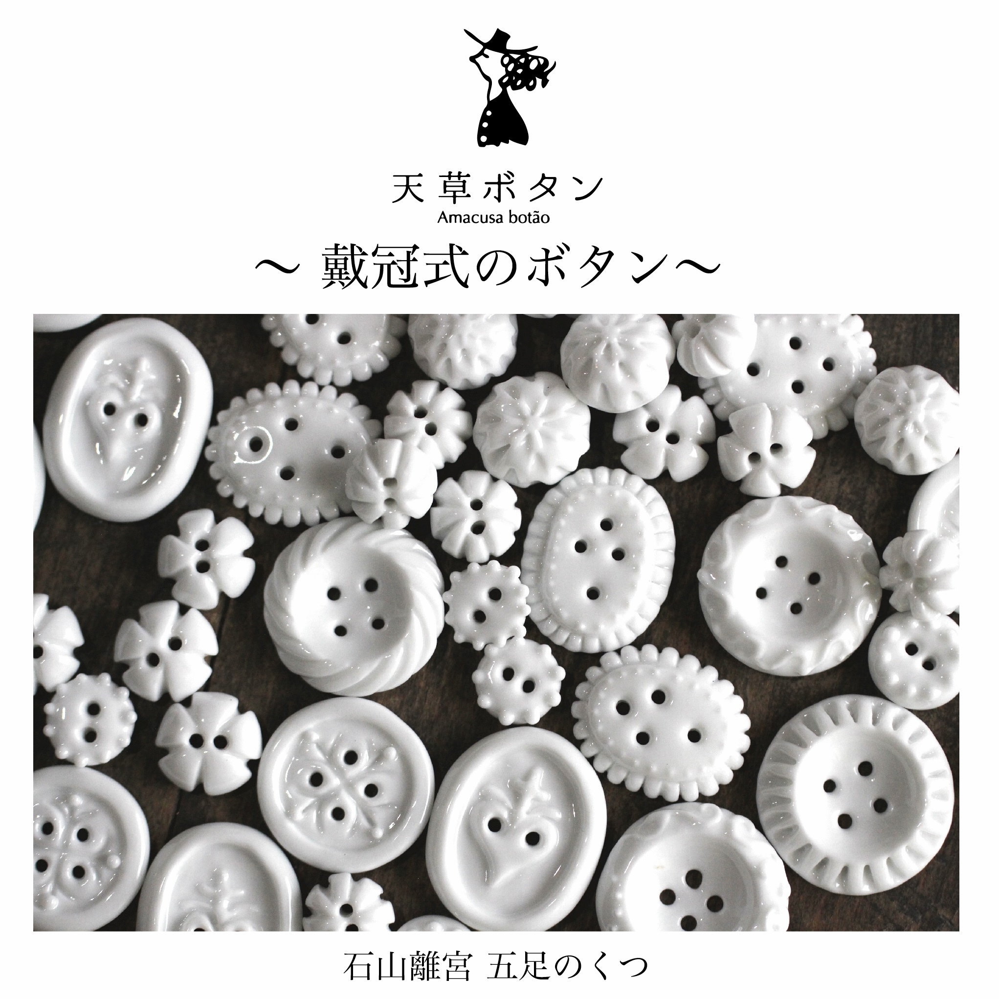 「戴冠式のボタン」は、天草下田温泉の旅館「五足のくつ」にて展示販売中です。