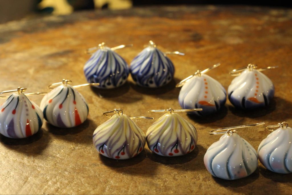 一つひとつ、形成から絵付けまで、すべて井上さんの手によるもの。