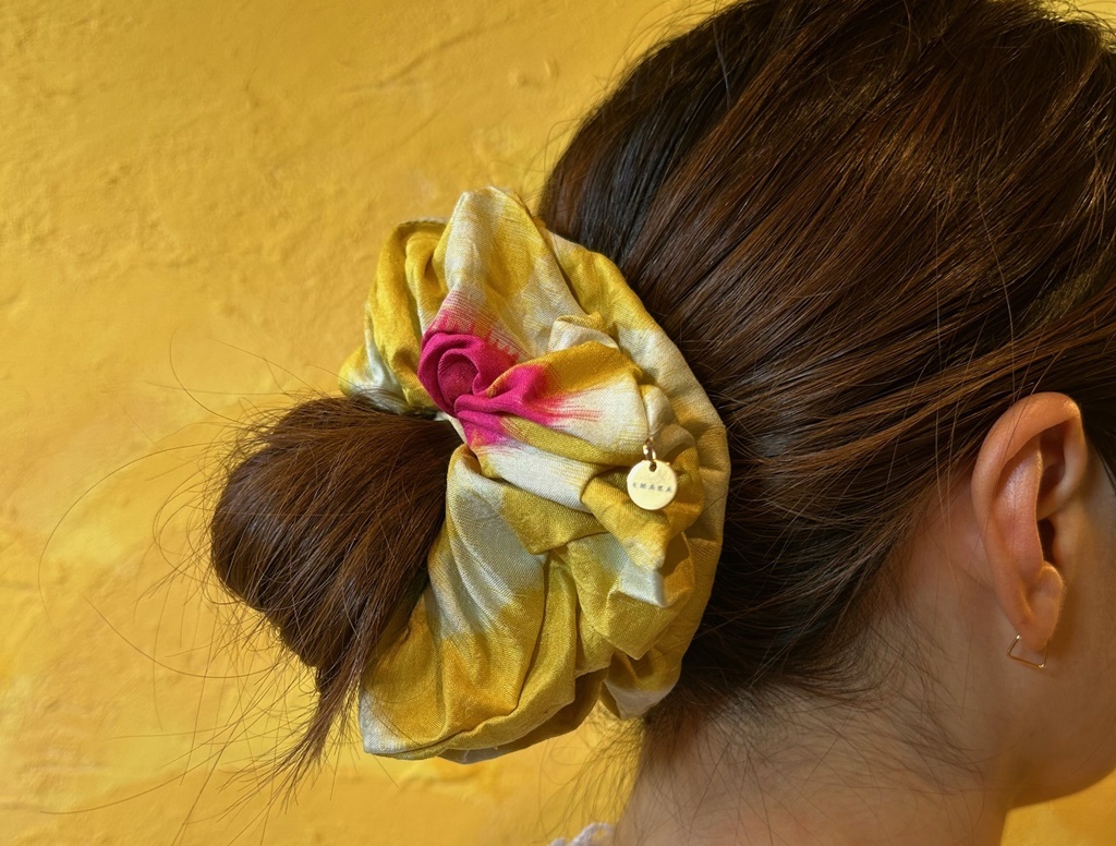 着物で作ったシュシュ。五足のくつの浴衣にも似合います。